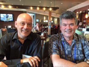 Besides the programming, When Words Collide also offers an opportunity to catch up with old friends and fellow writers, like Robert J. Sawyer, my fellow DAW family member Gerald Brandt (as seen in the photo, taken by Rob Sawyer), and Liz and Hayden Trenholm, who used to live in Calgary and now live in Ottawa: Hayden owns Bundoran Press, which brought out my titles Right to Know and Falcon’s Egg.