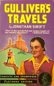 From the bookshelves in what is now my office, here are two examples of some of the earliest mass-market paperback books, 1940 printings of The Good Earth and Gulliver's Travels in Pocket Book format.