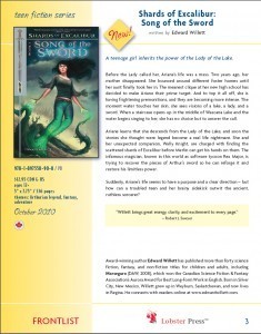 Lobster Press has just made its Fall/Winter 2010 catalogue available, and my new YA fantasy Song of the Sword gets pride of place as the first book listed.