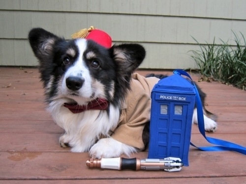 Have a corgi dressed as Doctor Who: