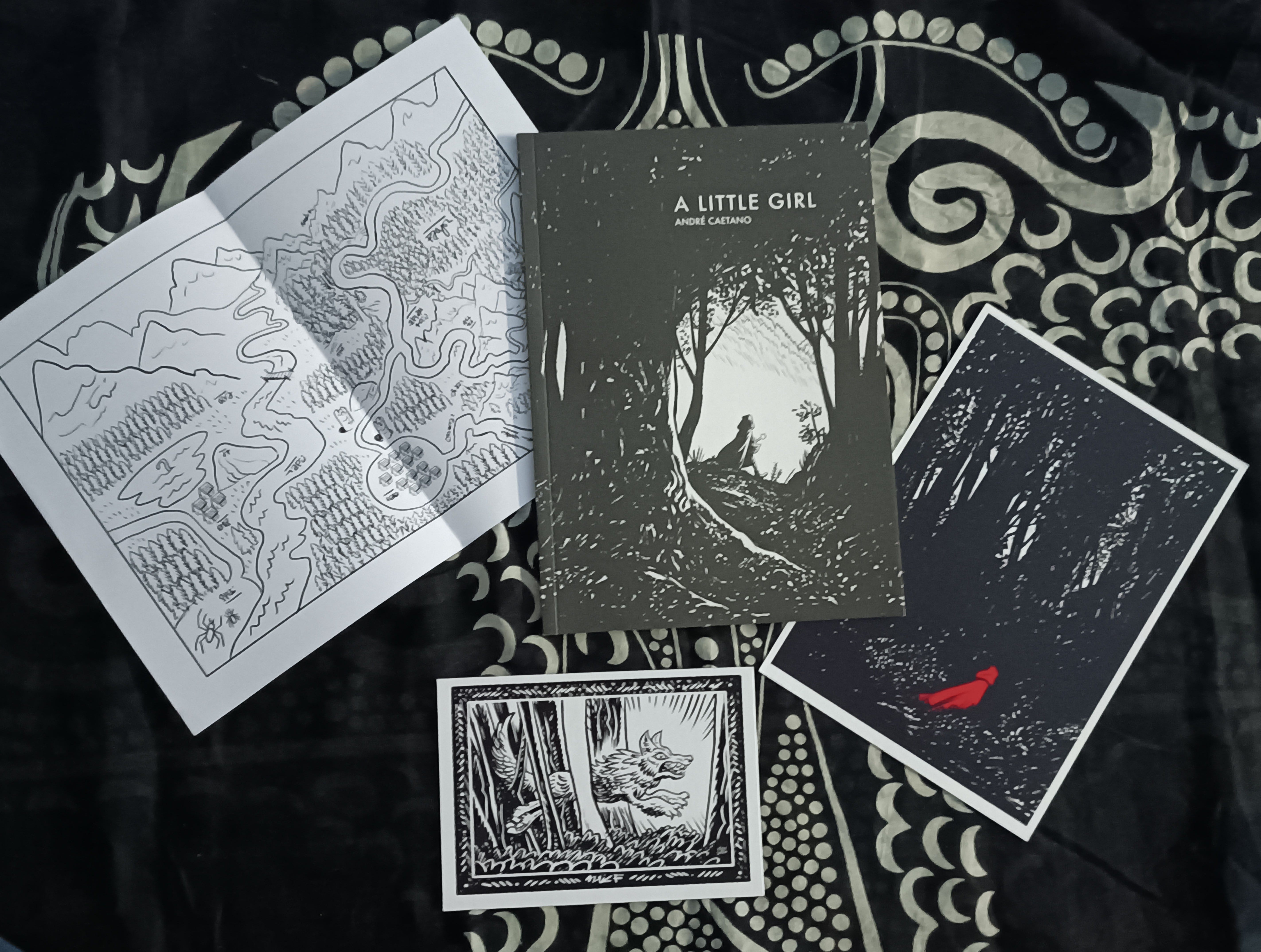 A Little Girl by André Caetano, is a little book about a girl going through the forest. It has no text so it leaves part of the story to the reader to interpret and make its own. This also came with a postcard and a map and André even threw in a print! I truly can’t wait to start reading this one.