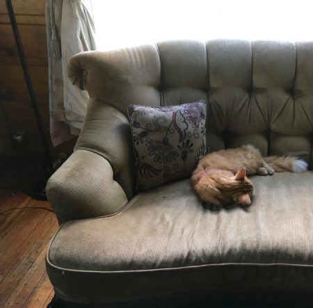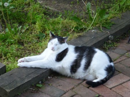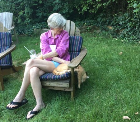 Finally, at long last, on May 16, 2017, I got to turn off my electric blankie. Finally, at long last, Spring dragged its hoary butt into what the TV people call “Seasonal Temperatures”. Lickety (above) likes going outside about as much as certain long haired dachshunds but there he was, sprawling on the patio like he’s just drunken half a dozen un-meaningful margaritas. That’s it! Your first 80-degree day of the year is intoxicating! Heat — glorious sun-baked warmth, star-sent lightness of being, dazzling brightness of skin-kissing light — heat makes you a sluggish, simple-minded, drunk! Wait. Is that what explains Florida?