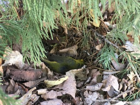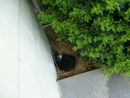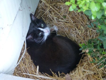 And it’s so cold that Steve is back to spending his days in his Winter nest half-way under the bush/all the way under the eaves by the front porch: