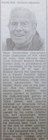 As you can read, I did not use Rolly’s obit as an excuse for every related schmo’s to get their name in print. I object to having to read lists of names of survivors in an obit, particularly the grandchildren (the boring Caitlyns, Kaylas, Taylors, Tylers, Madisons etc), who should earn their place in the New York Times by dying, same as everyone else. I wrote this obit to be all about Rolly, not about is survivors.
