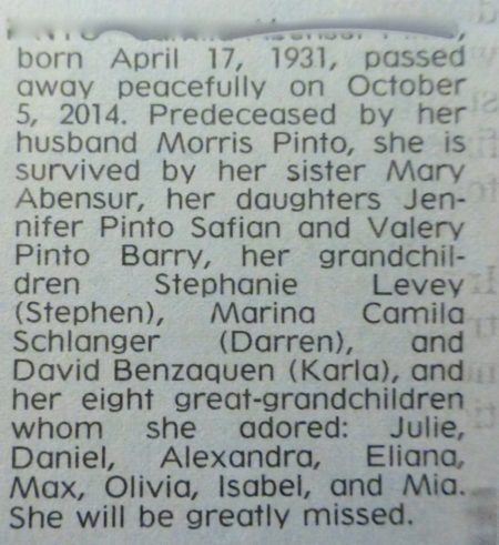 Let us start this without backstory (for now) so you can read this obit clean, like. Let’s pretend that you are opening your October 8, 2014 New York Times newspaper to the obits pages: