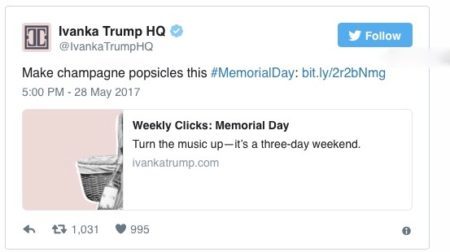 So Ivanka Trump, who as you know has the same common touch and mind meld with “the people” as her piece of shit father, used this sad and mournful day to tweet: