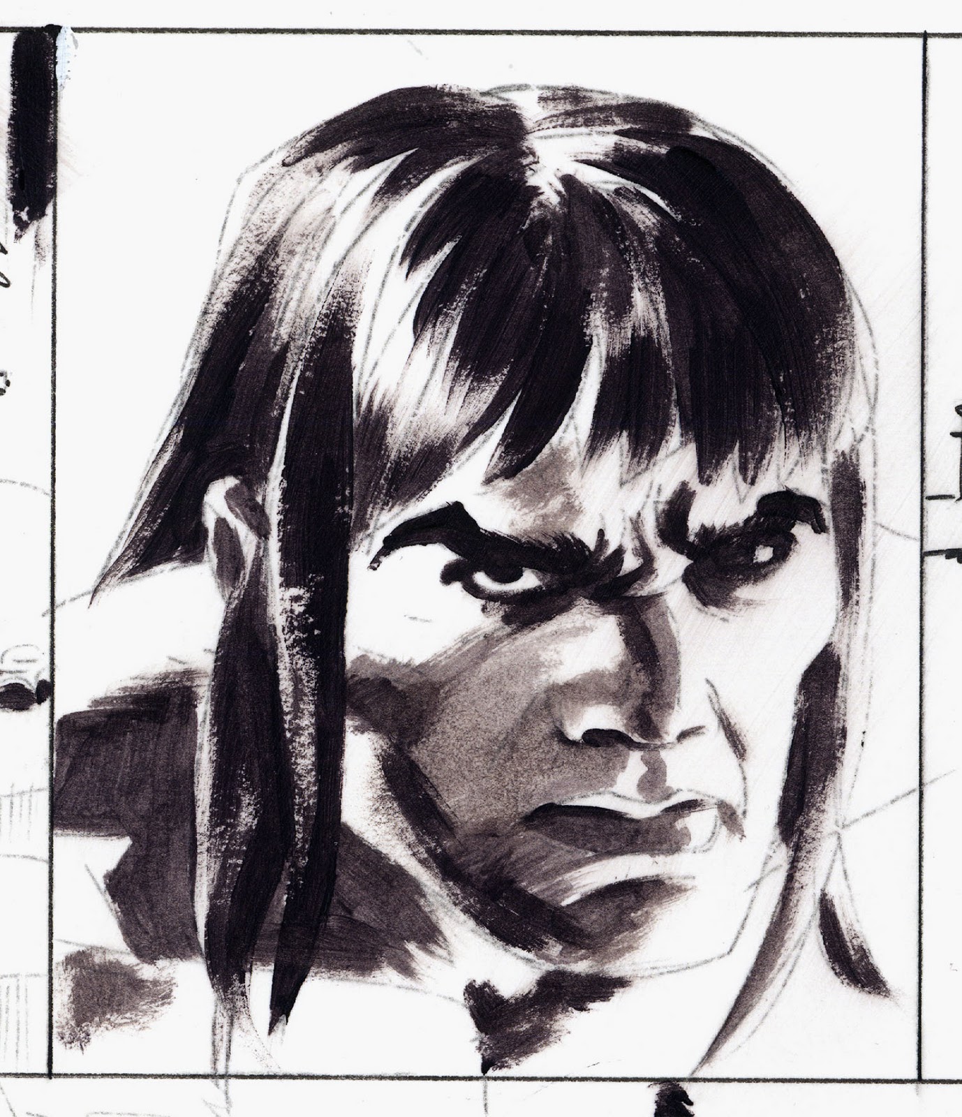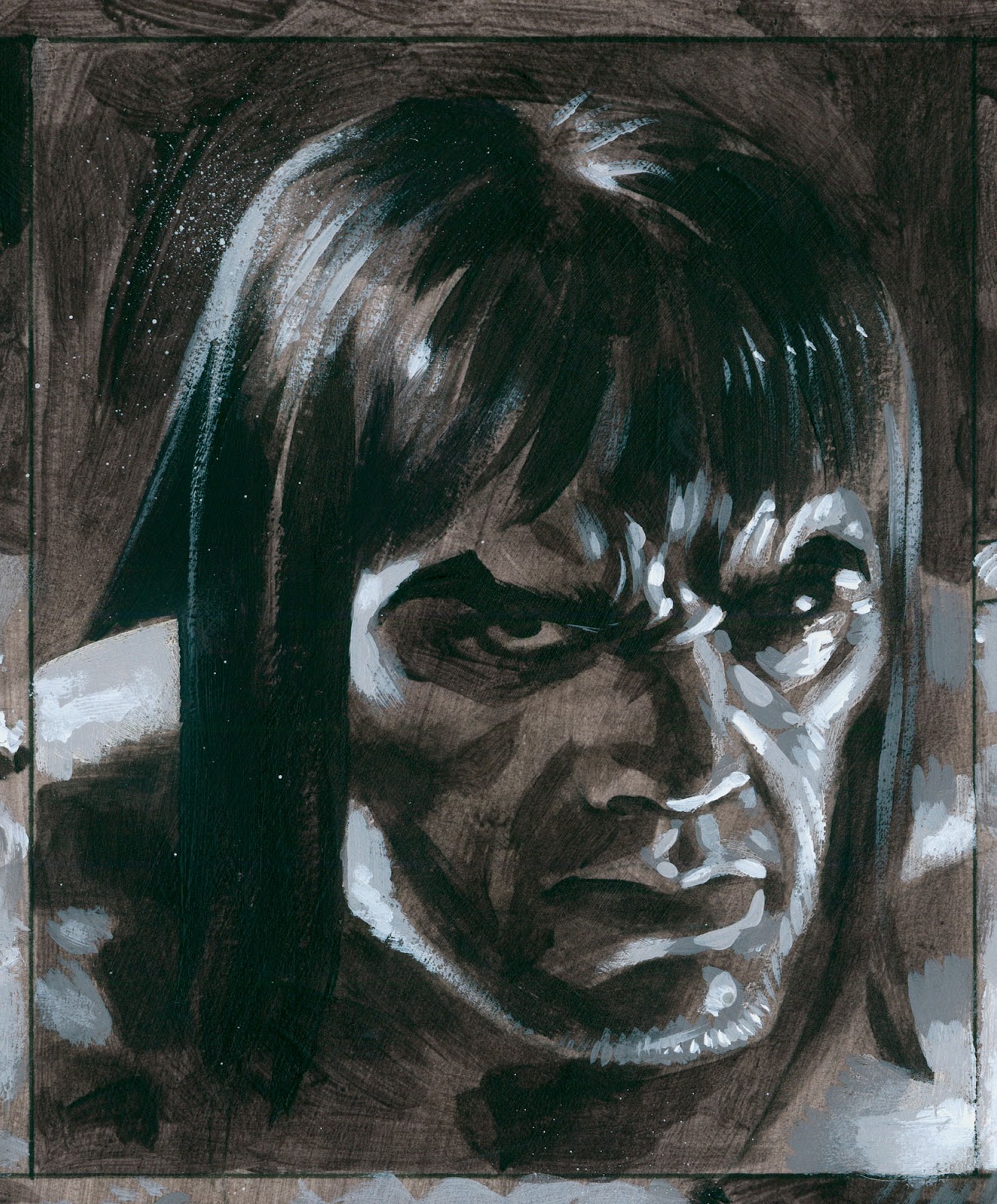Restricted palette: Black, white, raw umber, burnt sienna and yellow ochre.