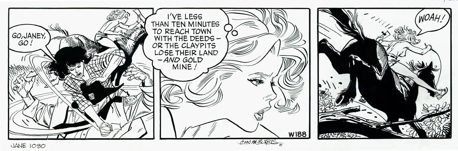 After all that scanning of John M Burn's Jane art last week, I couldn't resist, and had to go and buy some original art... I bought this daily along with a Frank Robbins Johnny Hazard daily I'll get round to posting someday.