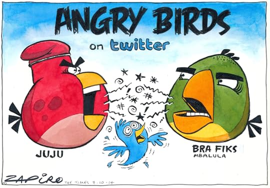EFF leader Julius Malema and Sports and Recreation Minister Fikile Mbalula, who were once bosom political buds, had South Africans gasping as they carried out a lengthy tussle on Twitter. Both Malema and Mbalula have been President of the ANCYL and until Malema was thrown out of the ANC, they supported each other. Cartoon uses characters from Angry Birds , which is a very popular video game franchise based stylized wingless birds. Angry Birds has been praised for its successful combination of addictive gameplay, comical style, and low price.