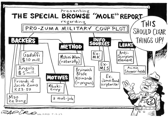 Could Gaddafi and the Angolans really be backing a Zuma coup? The Scorpian insist their strange report is credible. The Browse Mole Report alleges that Jacob Zuma, was funded by the Angolan President Jose-Eduardo dos Santos and the Libyan leader, Muammar Gaddafi. The "Browse Mole" Report contains these very serious allegations. When it was enquired as to who had authorised this investigation it was only then that it was discovered that the Scorpions were really gathering this illegal intelligence.