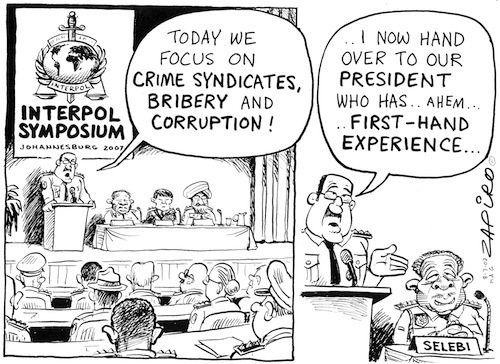 In March 2007, Interpol held a three-day training symposium in Johannesburg, which proved mildly embarrassing when Jackie Selebi’s minders attempted to prevent journalists from asking Ronald Noble, Interpol general secretary, uncomfortable questions about the alleged links of Selebi, then Interpol’s president, to the international underworld.