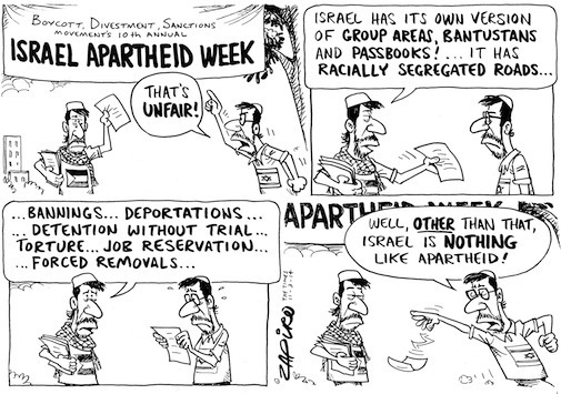 Israeli Apartheid Week (IAW) is an international series of events that seeks to raise awareness about Israel’s apartheid policies towards the Palestinians and to build support for the growing Boycott, Divestment, and Sanctions (BDS) campaign. Not unsurprisngly, the IAW and BDS movement have both come under fire from Israeli groups who say the initiatives seek to "hurt Israel more than to help the Palestinian. cause, When Israel is called an Apartheid state, its defenders - including some South Africans - cite the absence of state-sanctioned racial segregation, and the presence of Palestinian parliamentarians, as evidence that Israel is not an Apartheid state. Defenders of Israel see Apartheid purely in South African terms, and conveniently ignore that Apartheid was defined in international law in 1973, when the UN adopted the International Convention on the Suppression and Punishment of the Crime of Apartheid (ICSPCA). According to ICSPA, Apartheid involves "inhuman acts" committed for the purpose of "establishing and maintaining domination by one group" over another, and systematically oppressing them. They depict Israel as a progressive state with vast natural resources, a booming capitalist economy, and a rich cultural life with ties to the West. In an attempt to deflect attention from the Apartheid issue and instead focus on "positive" traits, Israel claims it wants to share its agricultural and technology know-how with its neighbours. Israel's PR campaign, particularly in South Africa, is based on the "What can we do for you?" approach.