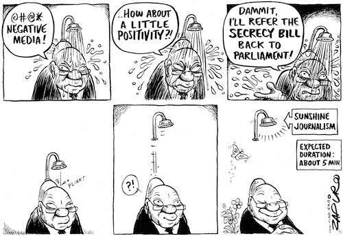 President Jacob Zuma gave a talk to journalism students in Pretoria in which he berated what he saw as South Africa’s overly critical and negative media. "When I am in South Africa, every morning you feel like you must leave this country because the reporting concentrates on the opposite of the positive," he said. Among a great many other things, he argued South Africa should be more like Mexico, where journalists apparently do not report crime because it is seen as unpatriotic to paint the country in a bad light.