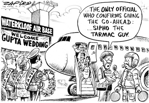 Guptagate - Private jet flies in 200 guests from India, landing at a restricted air force security base in Pretoria, allegedly without the appropriate clearance. Following this highly irregular event, the guests were trasported by a flashing, blue-light escort from the airbase to Sun City. At the wedding guests allegedly refused to be served or driven by black African staff, preferring white or Asian personnel. The passengers were guests of three wealthy, well-connected and influential Indian brothers named Gupta - Atul, Ajay and Rajesh and they deny any wrongdoing. The Guptas are major financial backers of the governing African National Congress Party and known to brag about their friendship with President Jacob Zuma. They're reported to have a business relationship with two of his children. Atul Gupta responded by saying that South Africans should be grateful for the investment the Gupta family is generating in the country."We're doing so much, so much as you can see. Hundreds of people getting jobs here. Temporary jobs, but it's a lot of boost to the tourism". South Africans complain this is merely another blatant example of cronyism and that the authorities are as much to blame as the Guptas. South African political analysts, commenting on the Gupta debacle, have said that the blame lies with the presidency as he hashas created the environment in which the Guptas have thrived and that it is this influence that is also the reason why The New Age Newspaper gets so much government support. While Zuma and all his ministers have denied involvement in giving permission, the embarrassing and much-publicized episode has yet to suck Zuma in. He was away and missed the Gupta wedding, which other government officials attended.