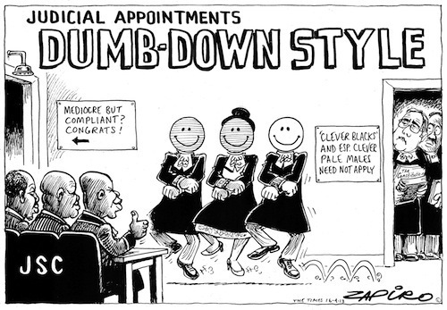 The Judicial Service Commission (JSC)is facing a crisis over transformation. The constitutional stipulates that the main criteria to appoint a judge is that individuals need to be "fit and proper" and "appropriately qualified"This should come before "need for the judiciary to reflect broadly the racial and gender composition of South Africa. What seems to be happening is that the latter is taking over from the former resulting in a mediocre choice of judges In a a report on transformation of the judiciary, Izak Smuts maintains there is a "very real perception in certain quarters" that the JSC was "set against" the appointment of white male candidates, except in exceptional circumstances. This statement and his resignation has caused a rift within the JSC.Chief Justice Mogoeng Mogoeng has lashed out at critics of the JSC's selection methods. He said that the commission did not "play games" despite the picture created recently that it would "recklessly subject the South African public to a judicial officer who does not have what it takes".
