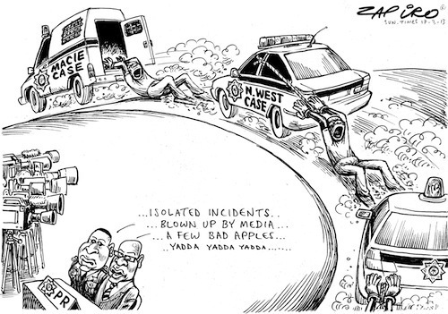In South Africa, the police have a culture of violence and impunity. In Daveyton, a Mozambican taxi driver Mido Macia died in police custody after being dragged behind a police vehicle. In Marikana, the police massacred 34 striking miners. In Ficksburg, an innocent protestor, Andries Tatane, was killed and in Cato Manor, 28 police officers face a string of charges, ranging from murder to racketeering. In all these places the police acted with excessive brute force, where they believe that they are not accountable to the law. While all this goes on the police minister Nathi Mthethwa and police commissioner Riah Phiyega remain in charge. In any civil society, they would have resigned.