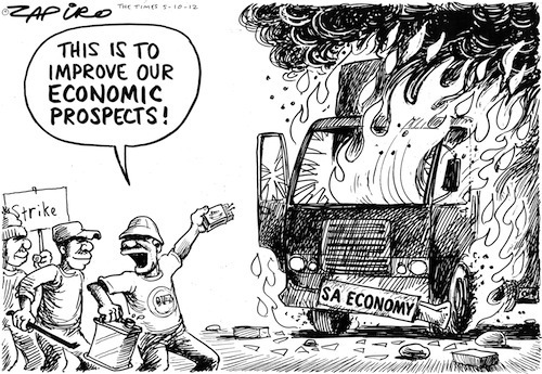 The ANC leadership battle is in full swing to decide whether President Jacob Zuma is retained or removed from office at the elective conference in December 2012. While the ANC top brass are fighting and "fiddling", the country is in uproar and in protest. There have been wildcat strikes in all areas of the South African mining industry including , platinum, gold, iron ore diamond mines and coal. As many as 75,000 miners, or 15 percent of the industry's workforce in South Africa, are on strike, undermining already shaky growth. Violent clashes during a six-week stoppage at platinum producer Lonmin resulted in the death of 46 people.
