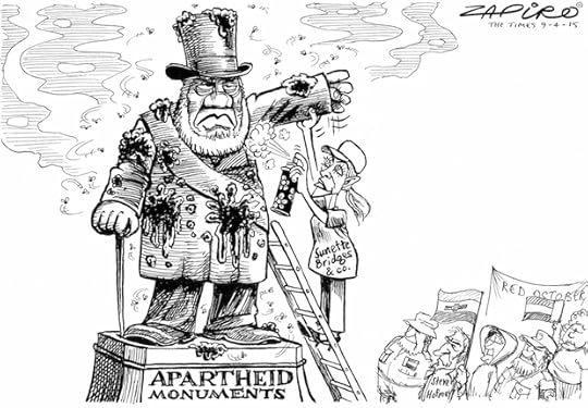 How South Africa confronts symbols of its difficult past is now being discussed in newspaper columns, television talkshows and mainstream politics. The Guardian reports attacks began a month ago when a student at the University of Cape Town flung a bucket of excrement over a statue of the British colonialist Cecil John Rhodes, which had enjoyed pride of place on campus since 1934. This sparked a vocal “Rhodes must fall” campaign, involving marches and sit-ins, that led to the huge bronze being removed from its plinth before ululating crowds, some of whom splashed it with red paint or held placards saying “more than a statue”.The radical Economic Freedom Fighters party, led by the firebrand Julius Malema, vigorously joined the movement. Its followers daubed paint over statues of the former South African leaders Paul Kruger and Louis Botha in Pretoria and Cape Town respectively