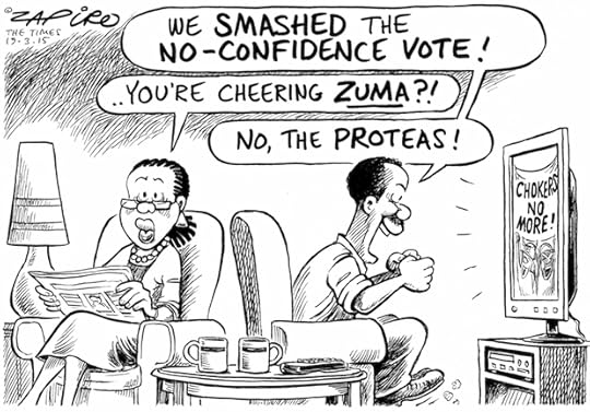 South Africa, so often labelled World Cup 'chokers', completed an emphatic win by finishing on 134 for one with 32 overs to spare. Victory meant the Proteas had, after several heartbreaking reverses that started at the SCG with a rain-affected semi-final loss to England in 1992, finally won a knockout match at the World Cup. .A motion of no confidence in President Jacob Zuma was defeated in the National Assembly on 17th March 2015 when the ruling African National Congress used its majority to keep him in power. “The results of the division is as follows: yes – 113, no – 221, abstain – 8. The motion is therefore not agreed to,” Speaker Baleka Mbete announced after the vote.