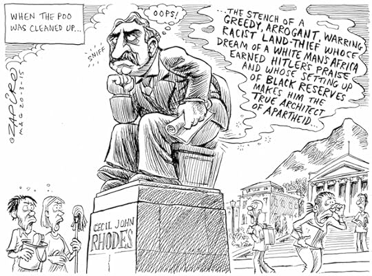 Students have tossed excrement on a campus statue of the British colonialist Cecil John Rhodes at the University of Cape Town in South Africa, calling the monument a tribute to the white domination of the past. Demonstrators have demanded removal of the statue and organized a “Rhodes must fall” campaign on social media. Memories of racial conflict are still fresh in South Africa, which shed white racist rule in 1994 after all-race elections. Rhodes, who died in 1902, was the namesake of Rhodesia, which became Zimbabwe after independence in 1980. He bequeathed land on which the University of Cape Town was built.