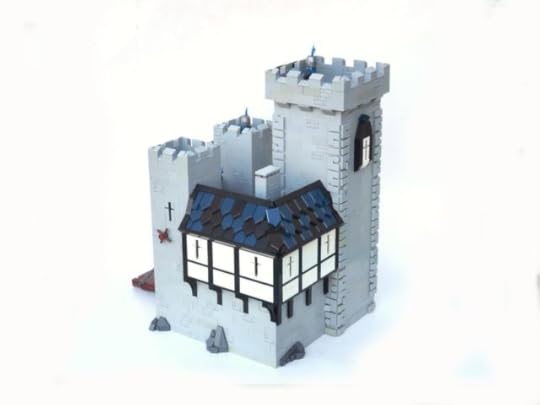 Around back I broke up the grey walls with this tudor-style corner building. I chose black and white to be in keeping with the Black Falcon’s colors.