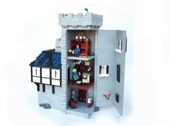 I have two dream castles: one is almost a palace, set in a beautiful landscape, with hundreds of towers and sparkling crenellations and stuff like that. This one is the other one: a compact stone affair with every possible convenience and inconvenience I could squeeze into such a tiny space.