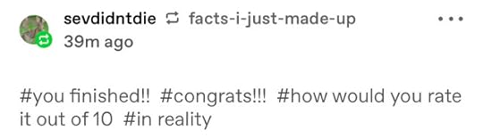 Also check out my writing blog for some actual thoughts on good moments in it and stuff.