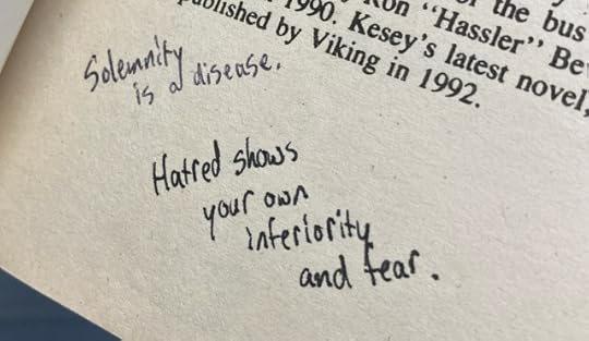 Things written in a used copy of Ken Kesey’s “One Flew Over the Cuckoo’s Nest.”