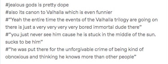 The second was called "The Lonely God" and covers Clarke's eternity, including his activity during the events of the Valhalla trilogy. He leaves Earth when the end of Gudsriki happens and it covers like a billion years before he willingly goes into the sun. The thing Bridge sentenced him to immortality for was that he destroyed something that would've been beautiful and amazing, and he's the only person who even knows what it was. So in the end, in the core of the sun after the heat death of the universe, is the one person who remembers and can never forget. Literally inspired by a kid who destroyed one of my drawings in high school and ended up being the only person other than me who saw it.