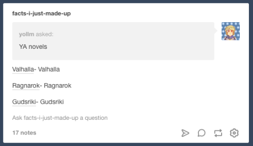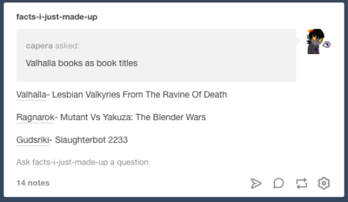 A selection of the more than 130 messages asking what the Valhalla books would be if they were… Something else. Some actually make sense if you know the books: