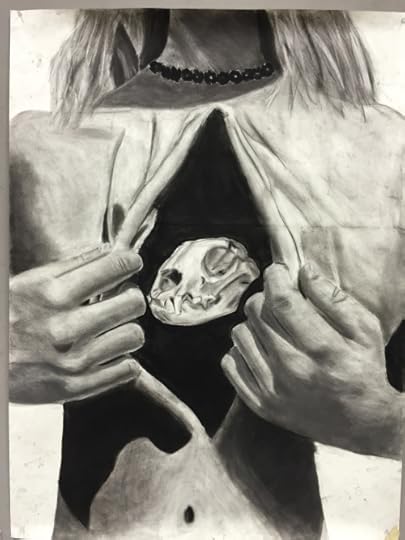 Fun fact: this was inspired by Ari Bach’s story Valhalla. They have little robots that are made out of their sternum and the robots live in their chests and they can go in and out through the skin. I’m sure the skin doesn’t open like this in the book, but it’s how I pictured it. The theme for the final drawing was transformation and it was a big moment for Violet to get her tikari so I decided to base my drawing on it.