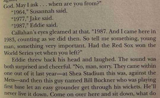 Book 7 of the Dark Tower series came out a month before the ‘04 world series. He will not know :(