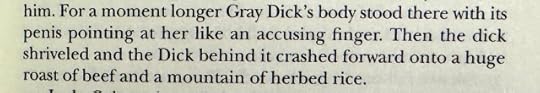 What interests me here is that the one overt reference to those books is inscribed on the most vile, nasty, dangerous and horrible weapon in the whole novel. I don’t think it means he knew some prophetic thing, for every rare reader who picked up on her real nature in the 00s there were ten thousand more who would find themselves betrayed with only a couple years of growing warning signs before she went full terf.