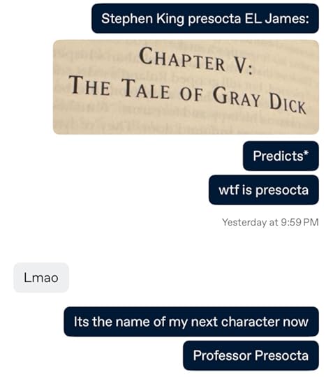 But interesting nonetheless, the harry potter nod in this book is a monstrous thing that kills children horribly. To my knowledge King has not commented on Rowling in decades, if anyone has heard anything new I’m all ears. King had his problematic writings for sure, but god the irony if he turned out to be the more responsible author.