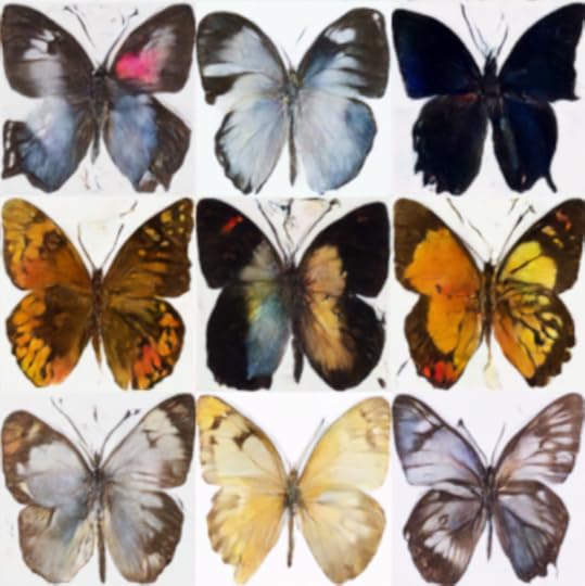 I took 1,000 images of butterflies from the Smithsonian butterfly dataset and trained a model using the diffusion method (see https://arxiv.org/abs/2006.11239). I ran those through an image pipeline that added different levels of noise and then used that dataset to train the model. After running the training set through four training iterations, this is what it thought butterflies looked like: