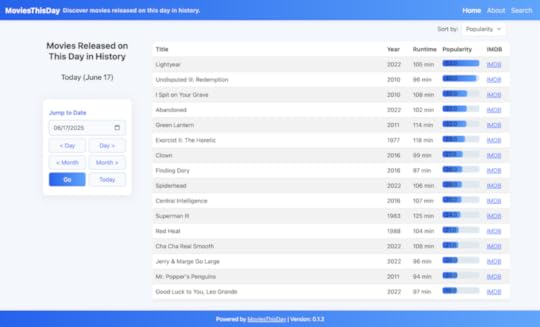 About eight hours later, I was done. Yes, that is probably about four times longer than I needed, but I was having so much fun! Fun? Yes, legitimate, awe-inspiring fun! I finished up the project by asking it to build the Dockerfile and help me launch the app as a public website for others to use. It complied. In case you are wondering, I even spent the $11 to get a domain: https://moviesthisday.com. I still have a non-stop list of updates spinning in my head, not the least of which is a MCP server for AI.