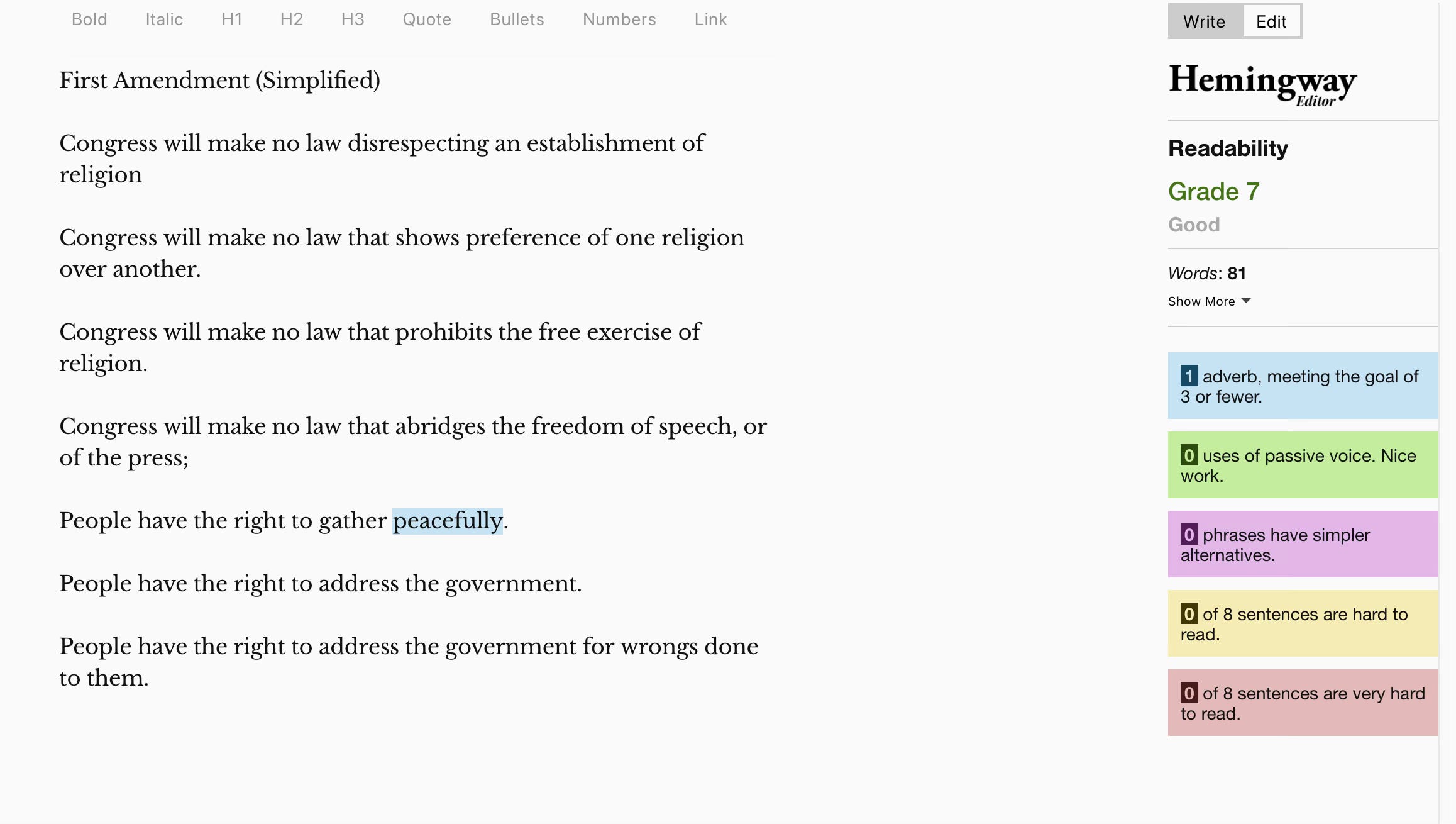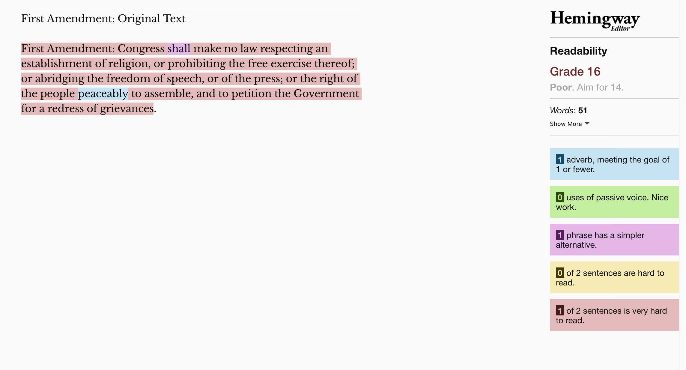 I used the free version of the Hemingway app to give you a look at how I would simplify this for teaching.