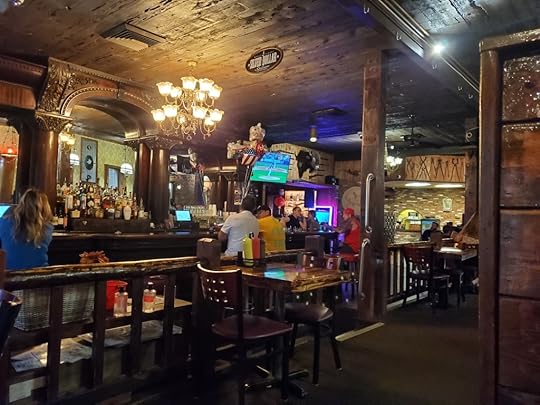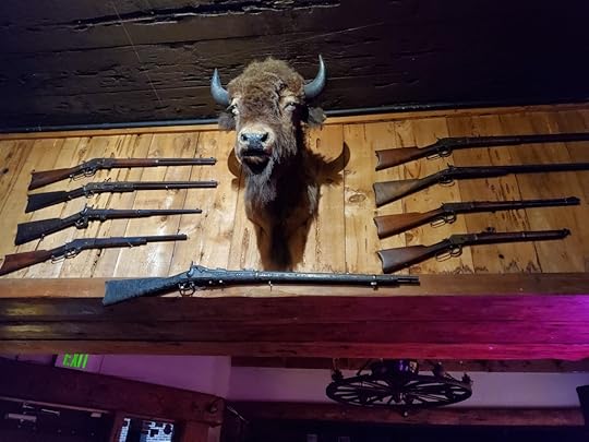 Once we had ordered our food, I started to look around, taking in the details of the past. The old wooden bar, the western items decorating the walls. As it got busier, a security guard in a cowboy hat stood near the entrance and kept an eye on the bar to make sure nothing got out of hand. I wonder how many cowboys have stood guard near that door over the years.