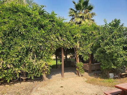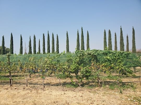 In the front of the house, the vineyards have nets to protect the grapes. These are the ones we drove past, when we drove in.