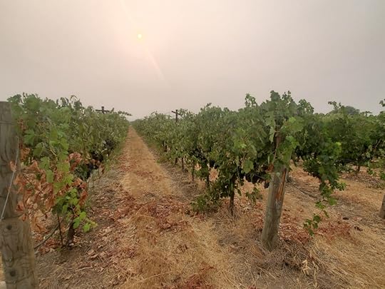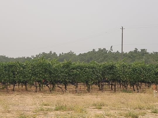On the other side of the vineyards you can see the mountains. I tried to get a picture of them but there was a lot of smoke in the sky from fires in California. There were no fires near Yuba City, CA so we were in no danger. I hoped the smoke would move on by the next morning and decided to try taking more photos then.
