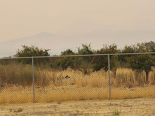 The next morning, as I’d hoped, the smoke had started clearing and I took a few more pictures. This time you can see the mountains.