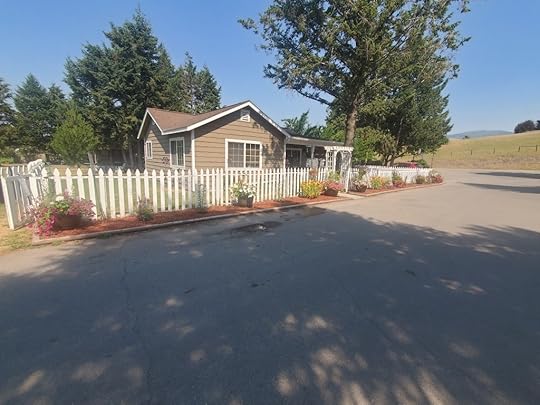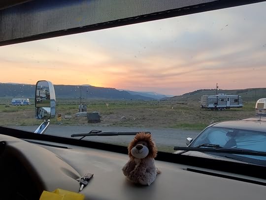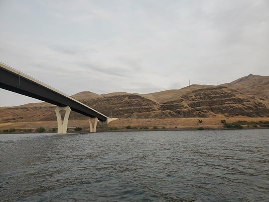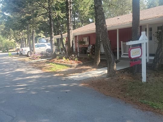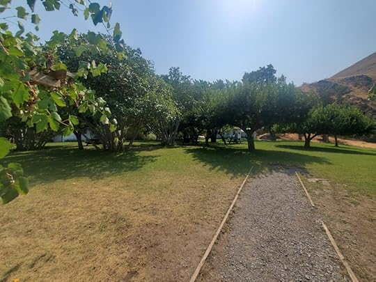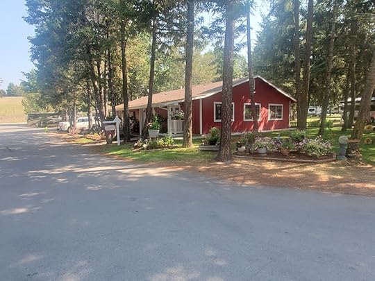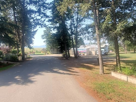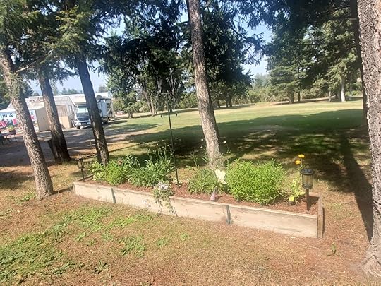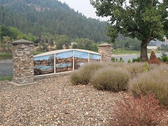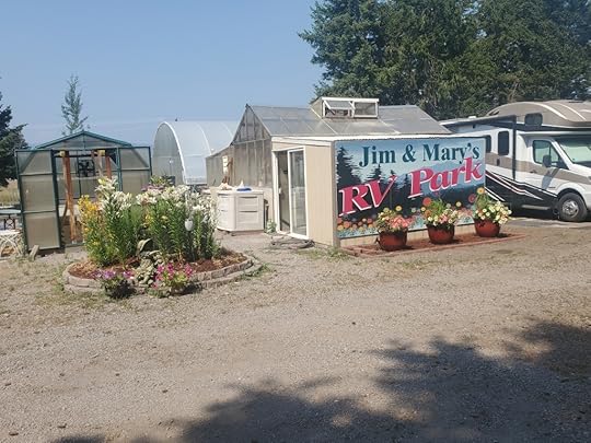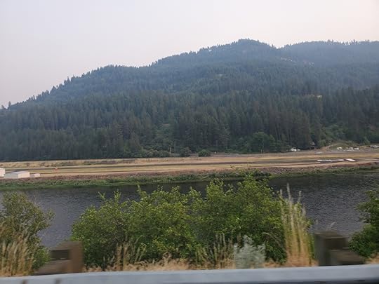 When my husband picked the Clearwater Crossing RV Park in Orofino, Idaho, which is right on the Clearwater River, I was excited about the prospect of being beside a peaceful river. It is beautiful there. But notice the sky in all my pictures. No blue, because of the smoke. Because of the fires. One evening I had called mother and was talking to her outside by the river when I heard a helicopter. Mike said he’d seen them dipping into the river with a bucket, to get water to drop on the fires. We listened to the helicopters coming and going for a while that night. Even with that excitement it was peaceful there and we enjoyed our stay. We stayed there July 14th to the 18th, 2021.