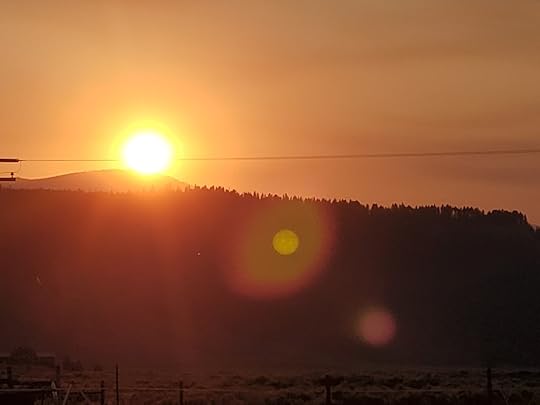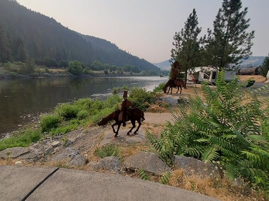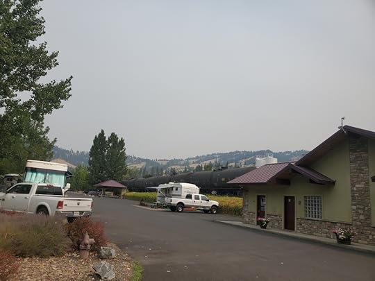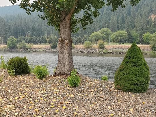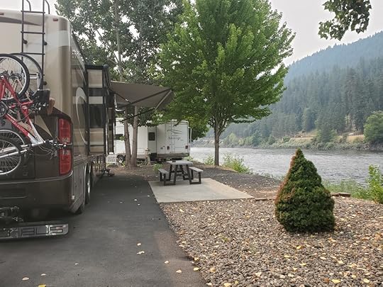 When my husband picked the Clearwater Crossing RV Park in Orofino, Idaho, which is right on the Clearwater River, I was excited about the prospect of being beside a peaceful river. It is beautiful there. But notice the sky in all my pictures. No blue, because of the smoke. Because of the fires.