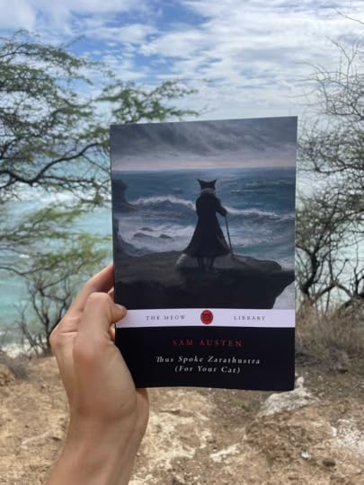 From his publisher, Meow Library: No clearer articulation of Nietzsche’s radical and long-misunderstood philosophy is to be found than in this lucid translation by celebrated feline linguist Sam Austen. The Meow Library’s painstakingly crafted rendition of this classic text shatters the boundaries of human language and gives revolutionary expression to Nietzsche’s declaration that “Man is a rope, fastened between animal and the Übermench” by rendering every word of Thus Spoke Zarathustra as a piercing “meow.”