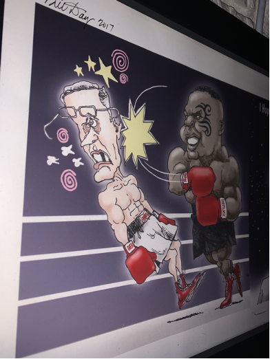 Illustration of me fighting Mike Tyson by award-winning cartoonist, Bill Day