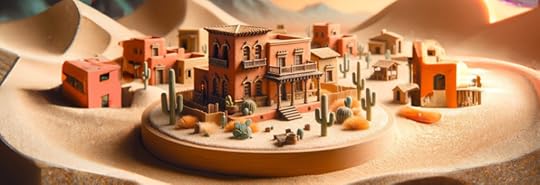 The hacienda lay on his worktable, out in the middle of the floor, glowing pink and yellow in the overhead light.