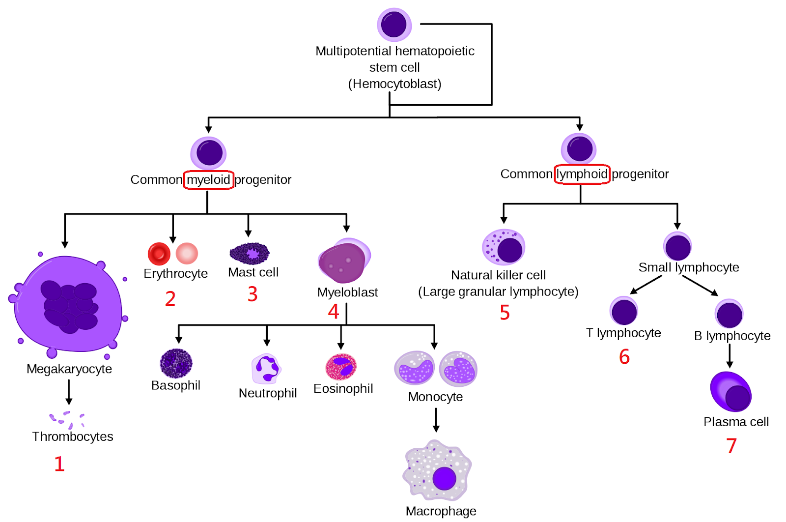 4. Without the myeloblast, there are no basophils for inflammation (which can be protective sometimes), neutrophils to attack bacteria and fungi, eosinophils to get the parasites, or monocytes and macrophages to gobble up bad guys.