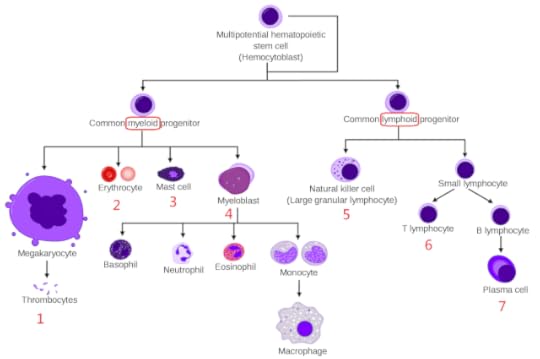 If you look at the family tree of white blood cells below, you will see how if your myeloid and lymphoid progenitors are both messed up, that can quickly become incompatible with defending yourself against the lethal game called Life. It's like a choose your own adventure story where all the endings are (necessary to avoid) death.