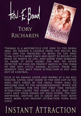 Congratulations on the five star review for Instant Attraction! I actually read the book a few months ago and absolutely loved it. It is my favorite book on my Kindle and has been for a while. I loved the story, especially James, the smokin' hot motorcycle cop neighbor of Julie's. When those two got together it was red hot. You did an great job!