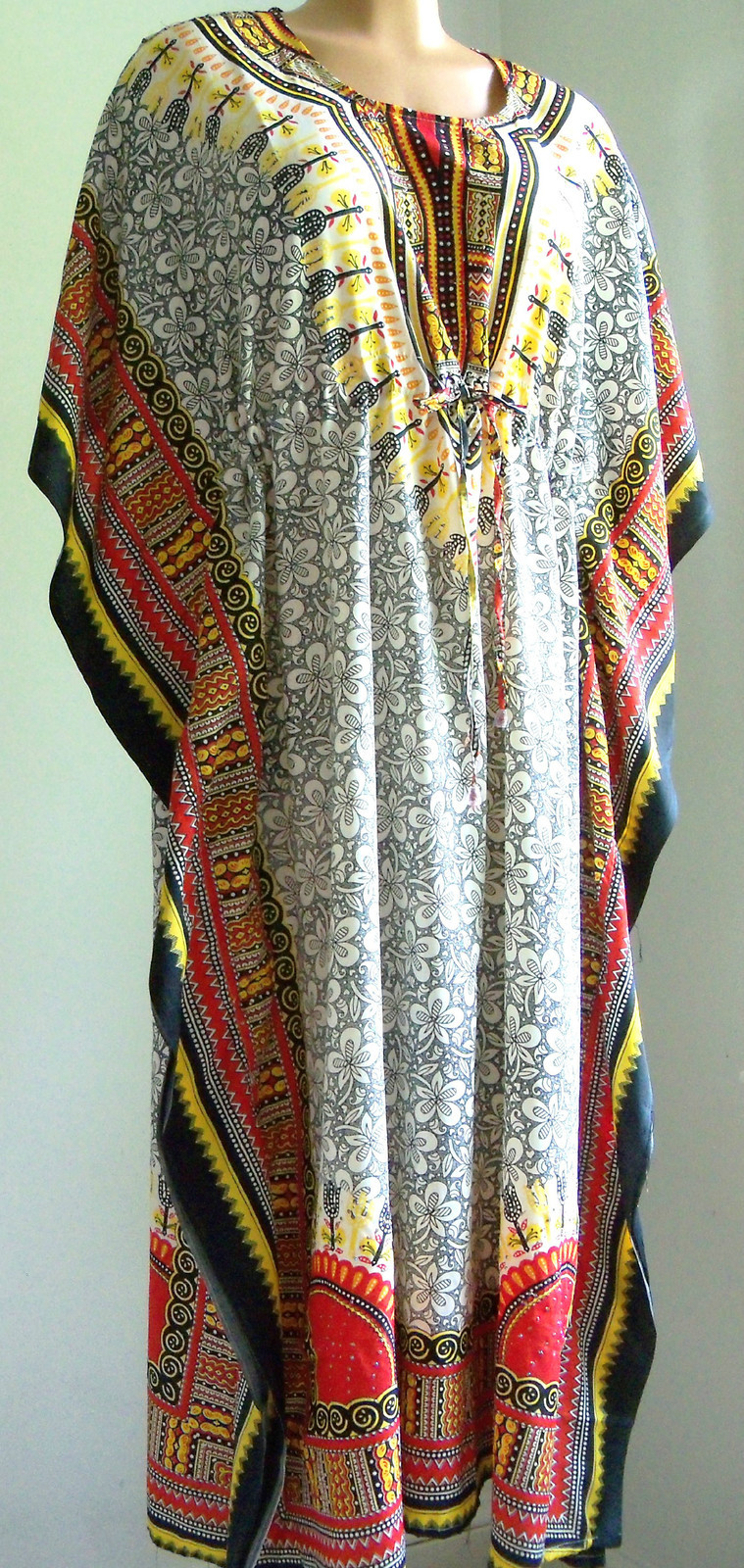 My daughter, niece and I have had this debate going on for some time, and I would like clarification. I recently purchased the long Kaftan. I like to wear them around the house, they are so comfortable! Both girls say they are moo moos, but I remember moo moos as the sleeveless short dress below. So what do you say? Are they both moo moos? I see a big difference myself.